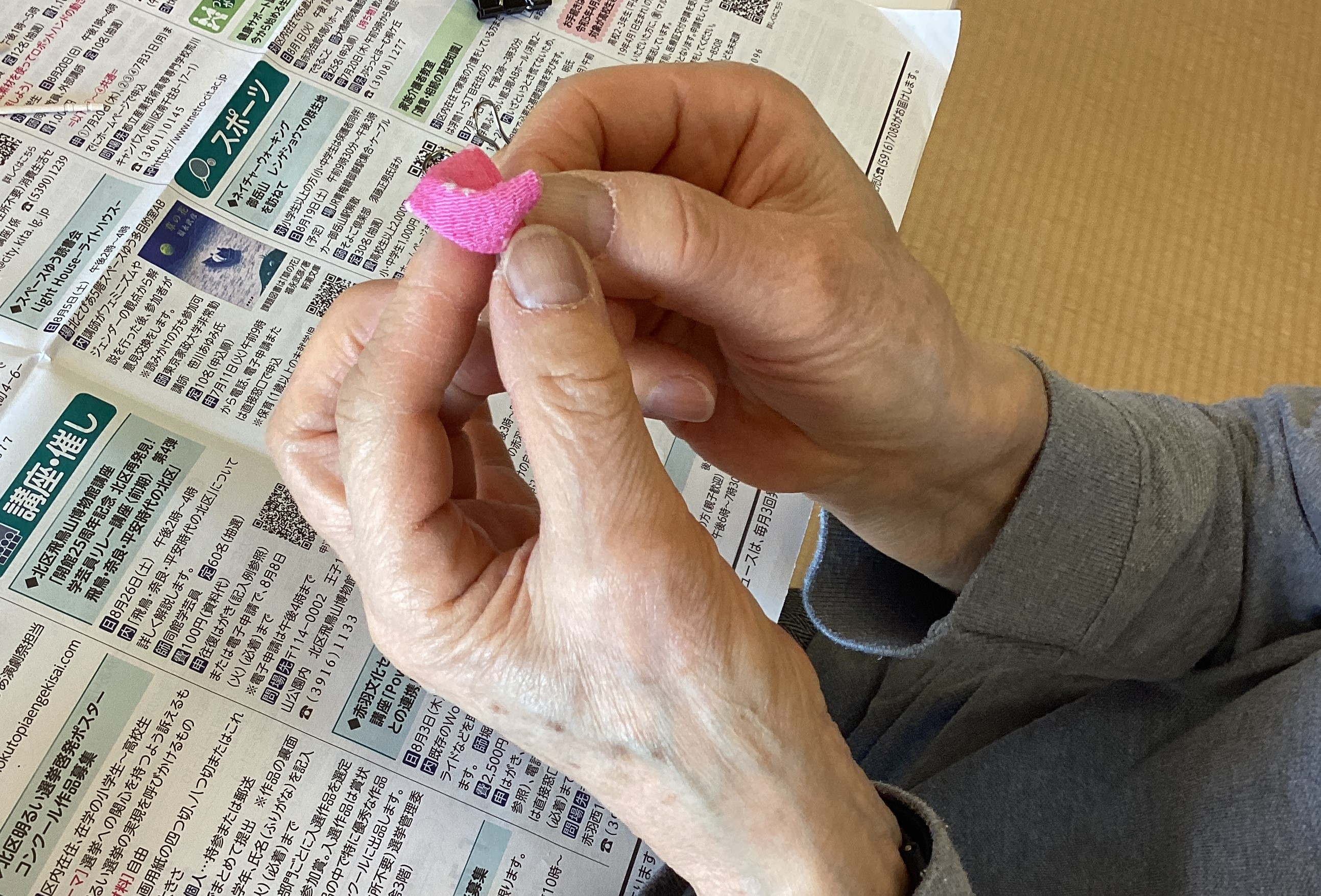 花びらを1枚1枚つまんで作り、お花の形にしていきます。