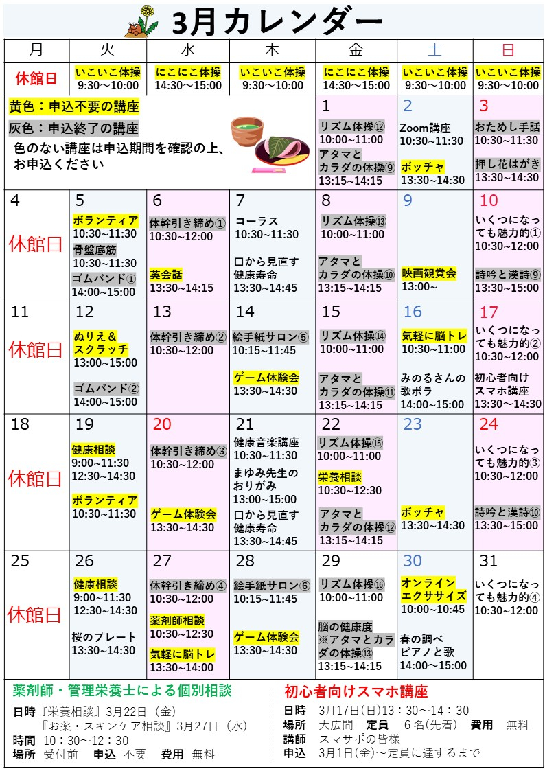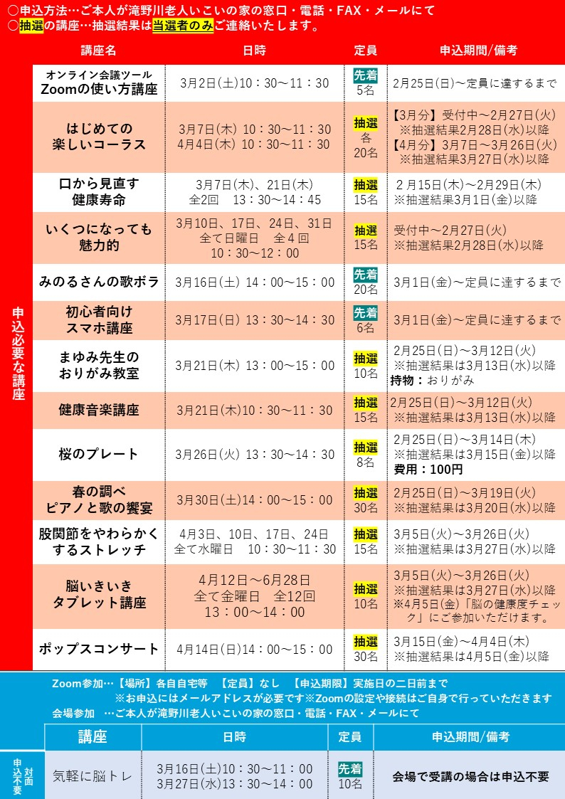 「口から見直す健康寿命」「歌いながら体を動かす 健康音楽講座」といった健康系の講座や