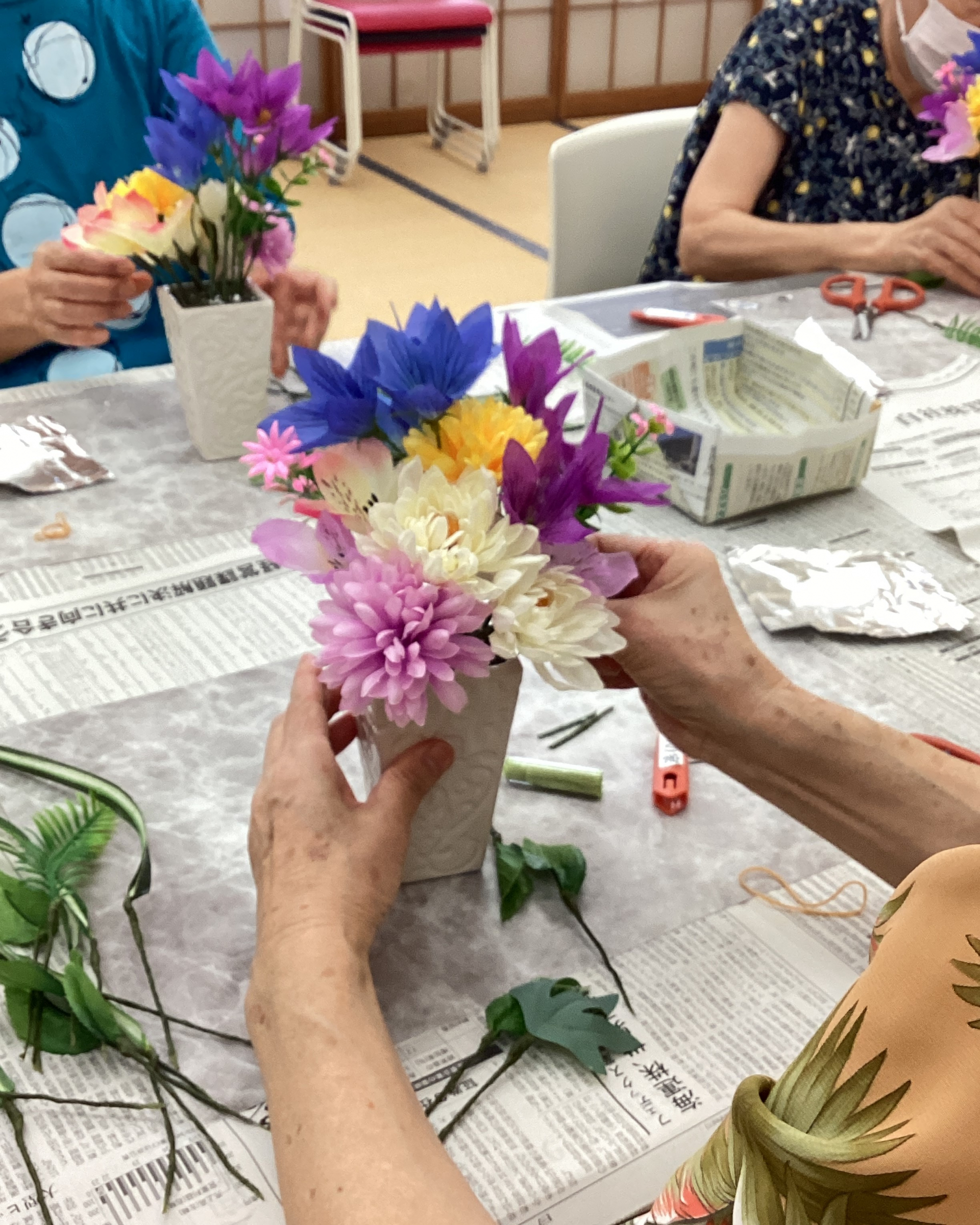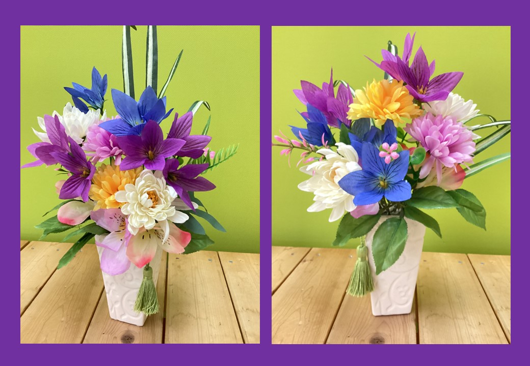 菊や桔梗などの造花を使って皆さんでアレンジ!