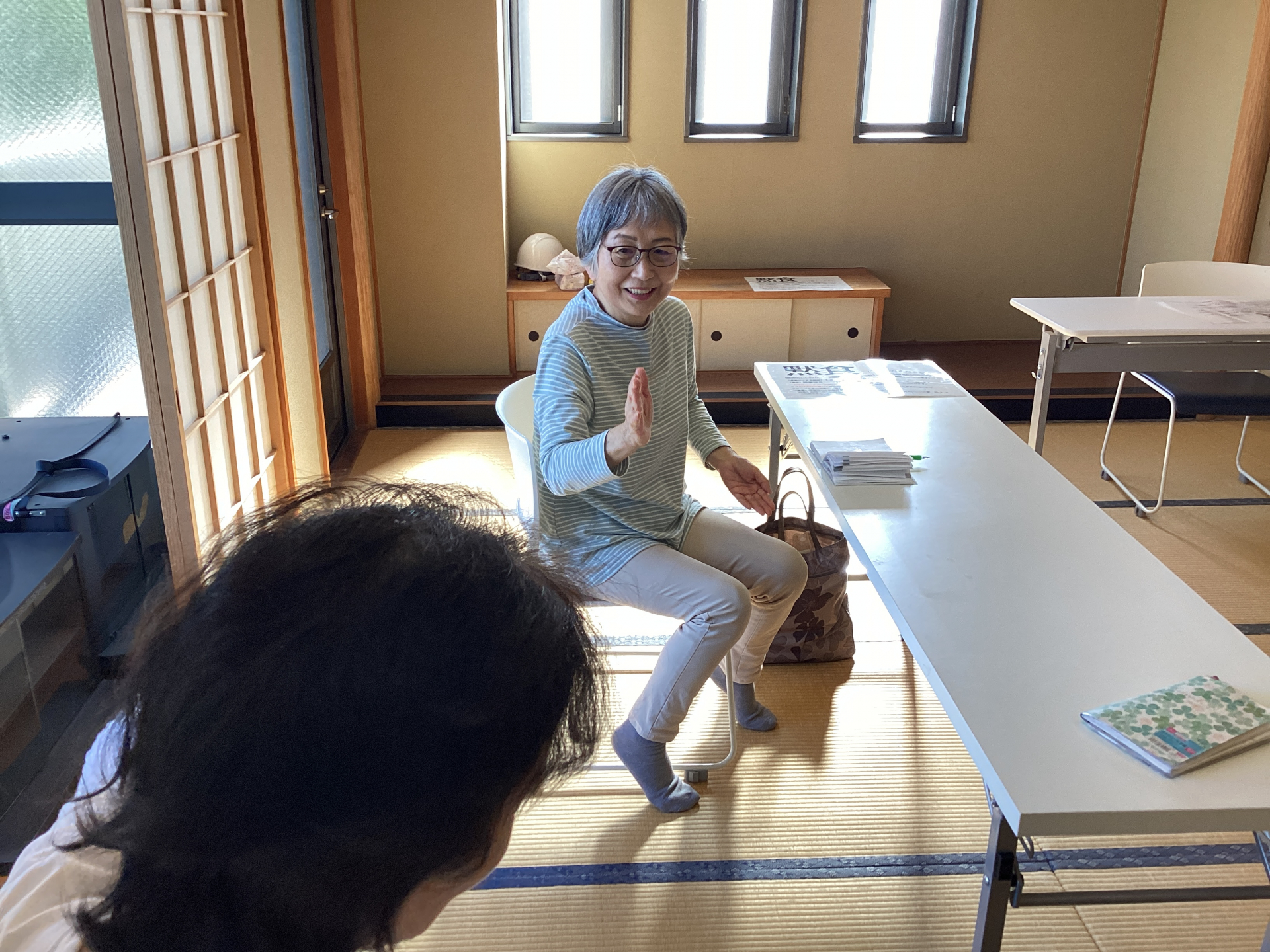 火曜日午後に手話講座参加の方々が娯楽室で手話を自習しています♪