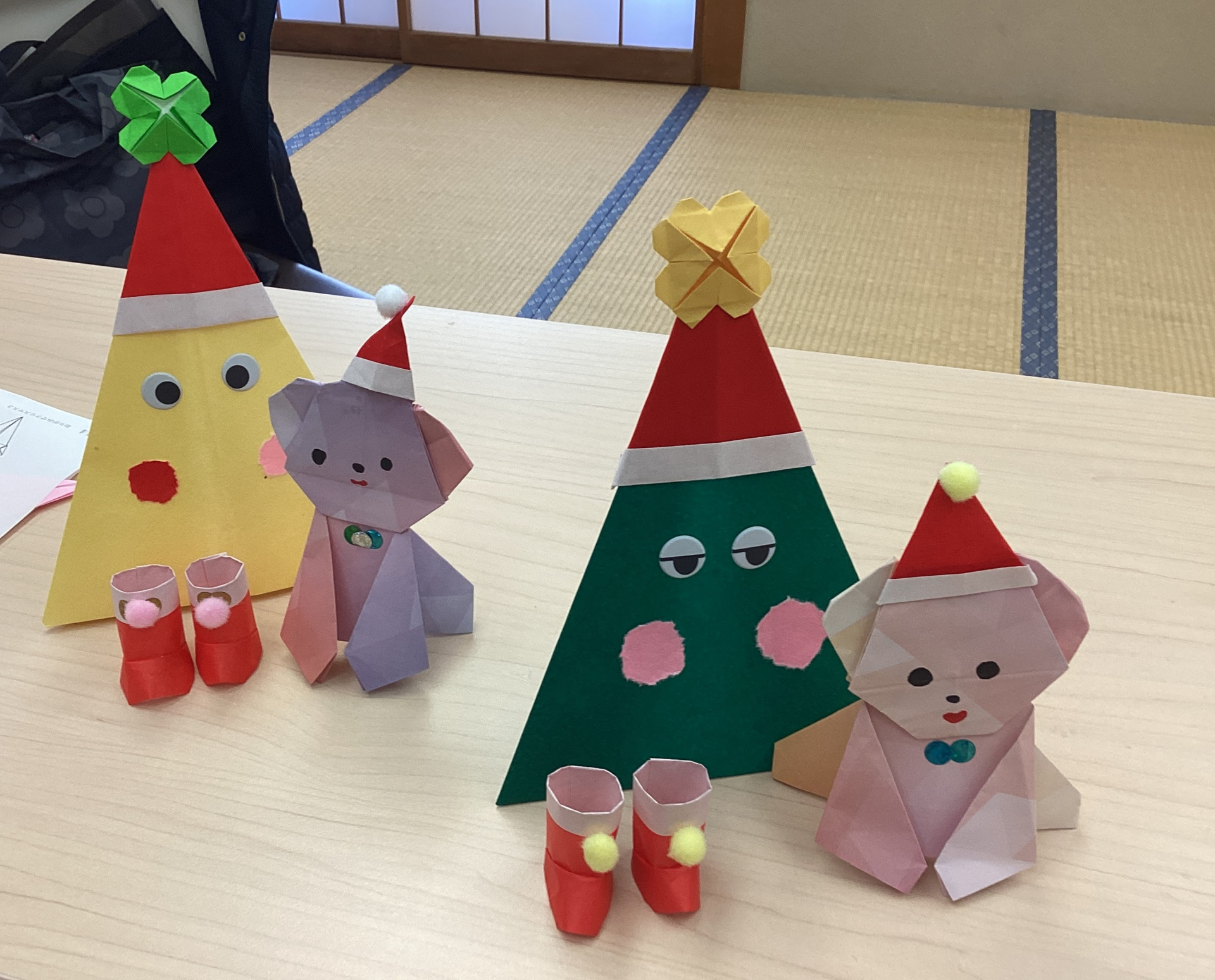 12月のまゆみ先生のおりがみ教室は可愛いサンタさんを折りました。