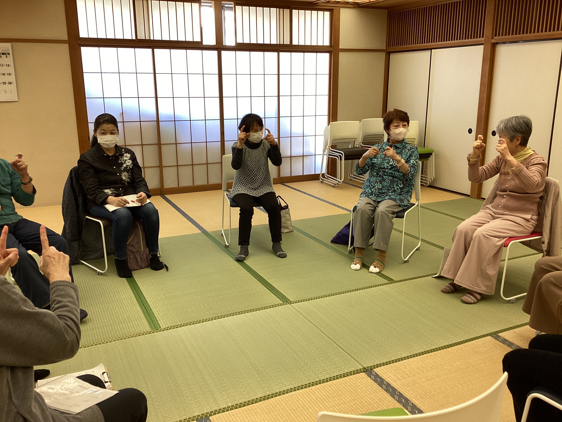 余裕がある方は他の参加者の名前や住所の手話覚えたりしています。