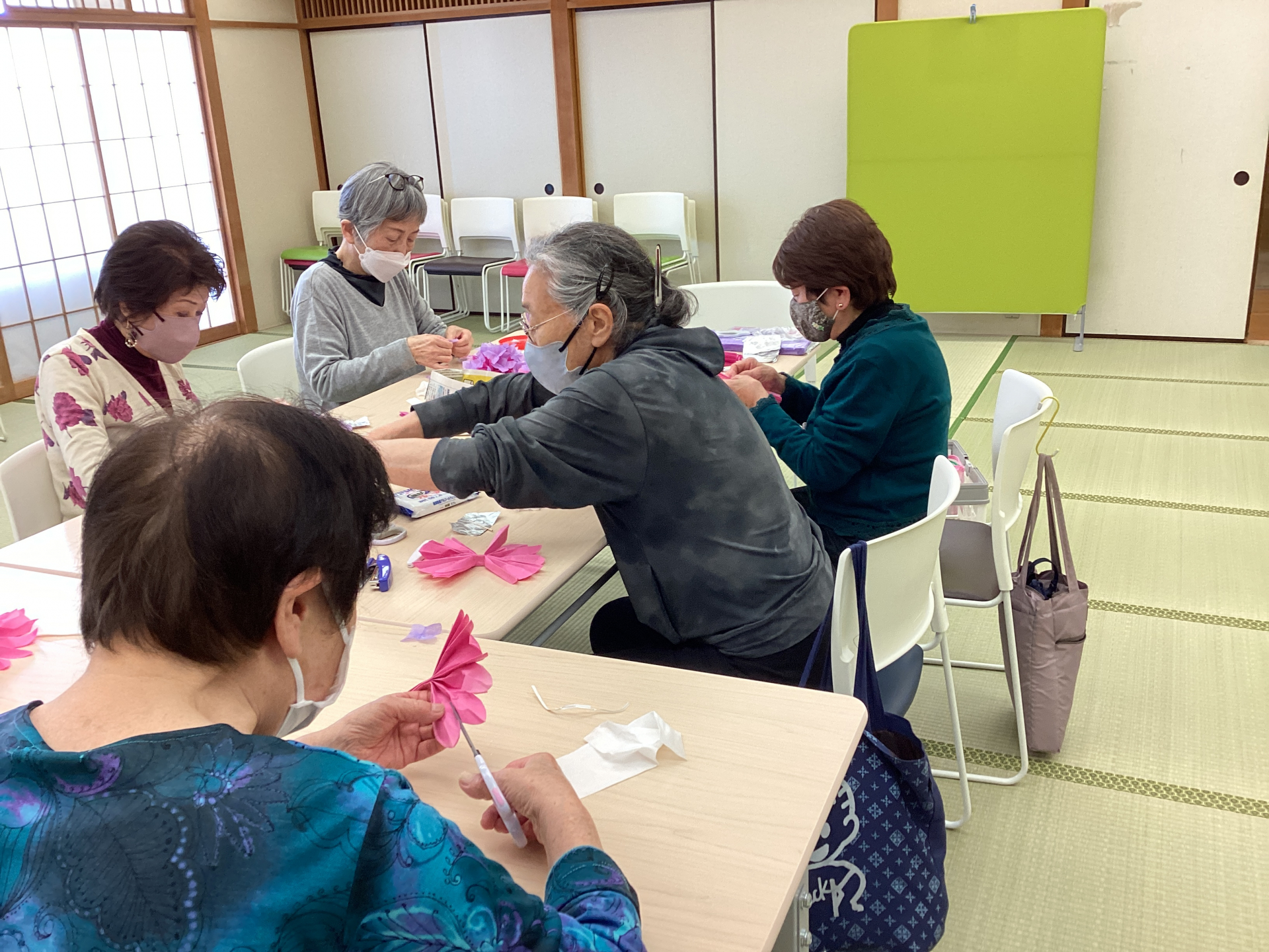 ボランティアの方々に館内装飾用の紫陽花を作っていただきました。