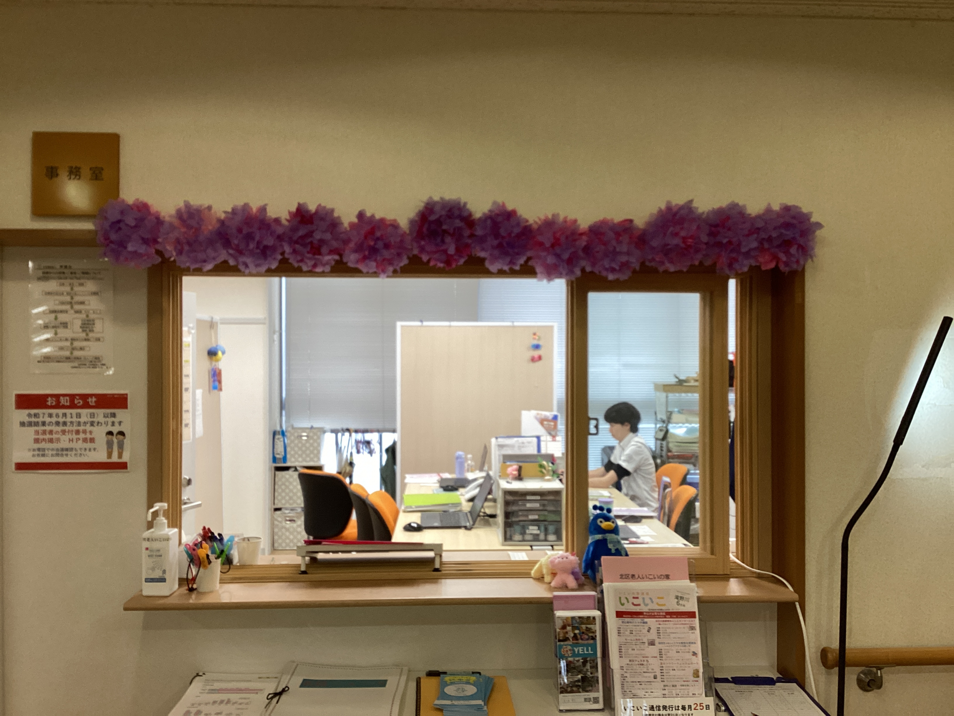 2025.06.02 活動報告 6月の館内装飾 Tweet シェアする ボランティアの方々に館内装飾を変えて頂きました。 6月は紫陽花にしました。 全て利用者ボランティアの方々の手作りです。 受付も6月らしくなりました。 本日のボランティア活動の様子はこちらをご覧ください。 高い所や危ないところは職員が手伝いますが ほぼほぼボランティアの方々にお願いしています。 ボランティア同士も作業をしながら自然と仲良くなっていらっしゃいます。 今月は通信折りのボランティアがあります。 詳しくはこちらをご覧ください。 よろしくお願いいたします。 滝野川老人いこいの家 職員H.K 前の記事 2025.06.04 活動報告 ボールで体操④ 次の記事 2025.06.01 活動報告 知って対策、紫外線講座~お肌のためのスローエイジング講座~ 一覧へ戻る