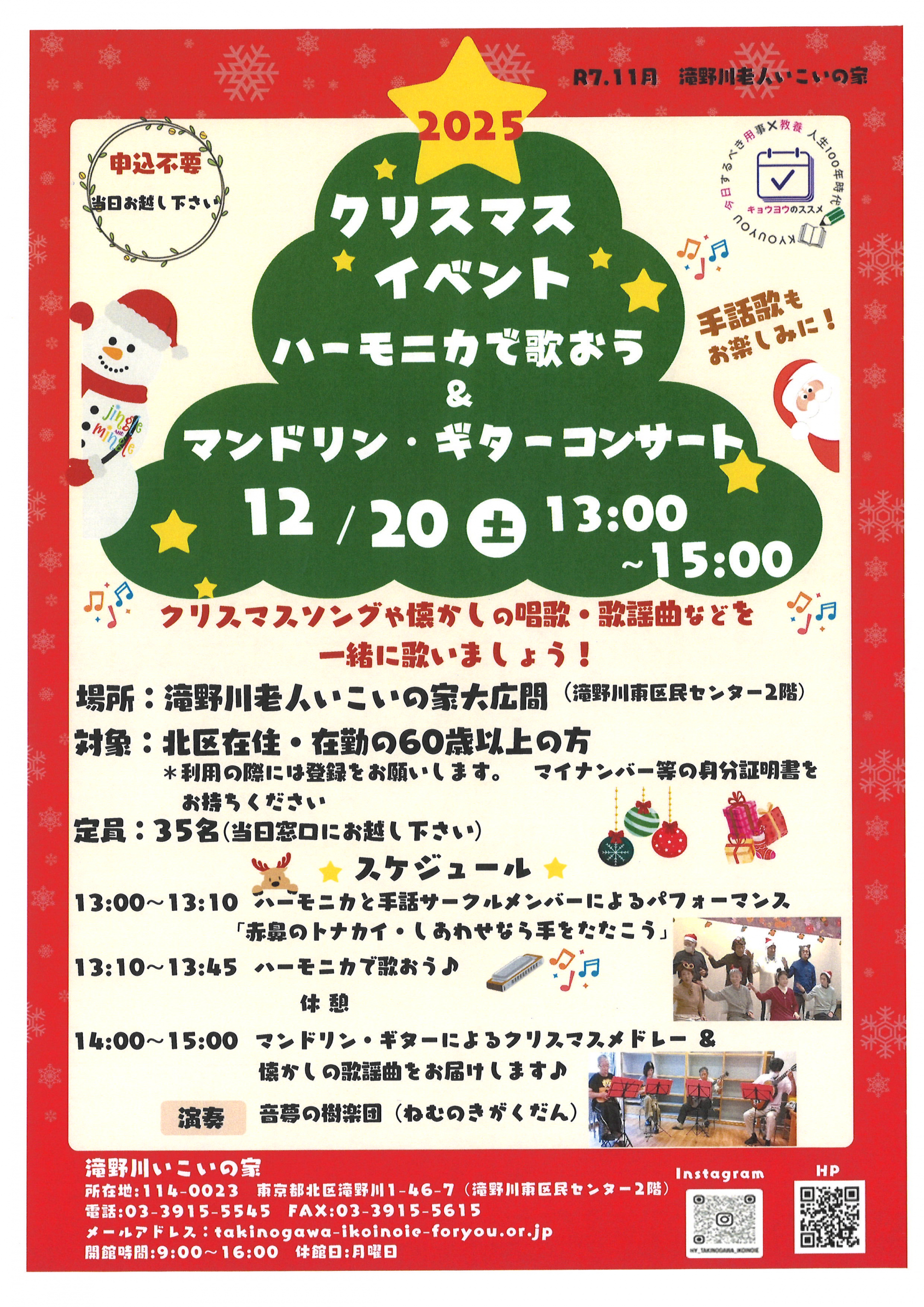 🎄クリスマスイベント⭐ハーモニカで歌おう&マンドリン・ギターコンサート♫