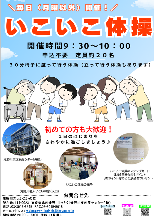 いこいこ体操も実施いたしますので、ぜひご参加ください。お待ちしております!