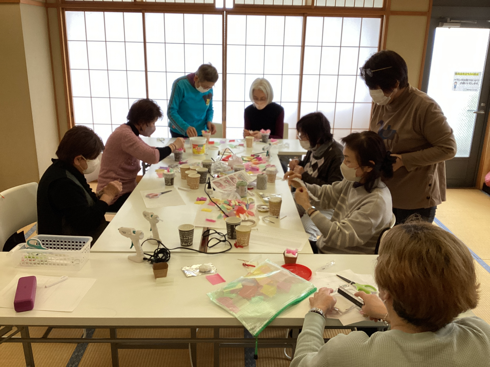 出来上がったお花に「かわいいー!」とワイワイガヤガヤ♬