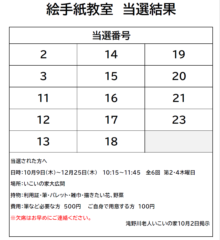 【当選発表】絵手紙教室(10月~12月 全6回)