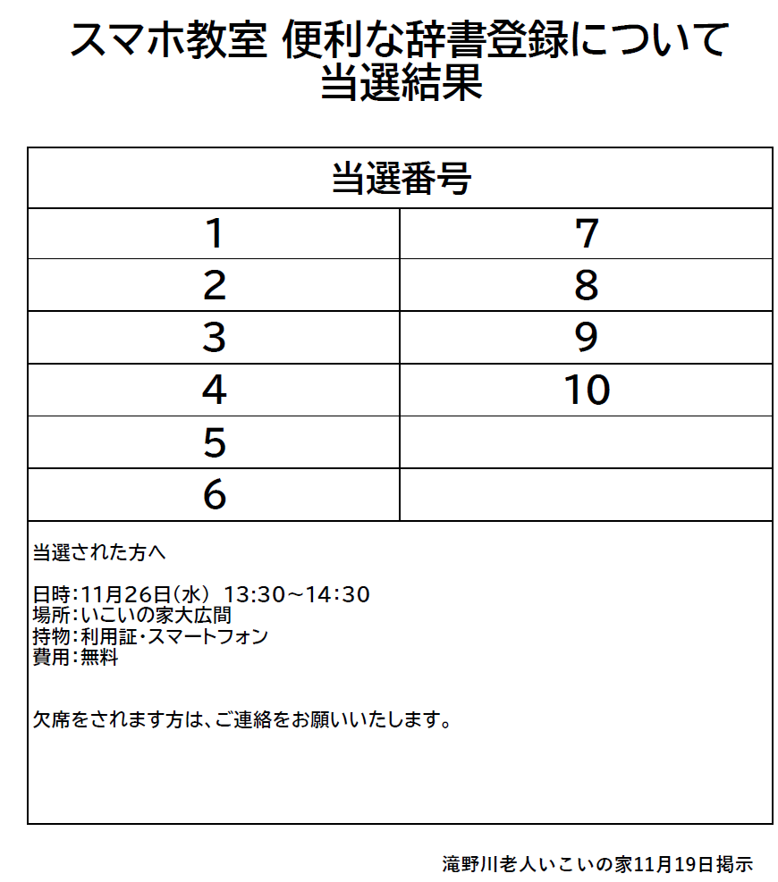 【当選発表】スマホ教室 便利な辞書登録について