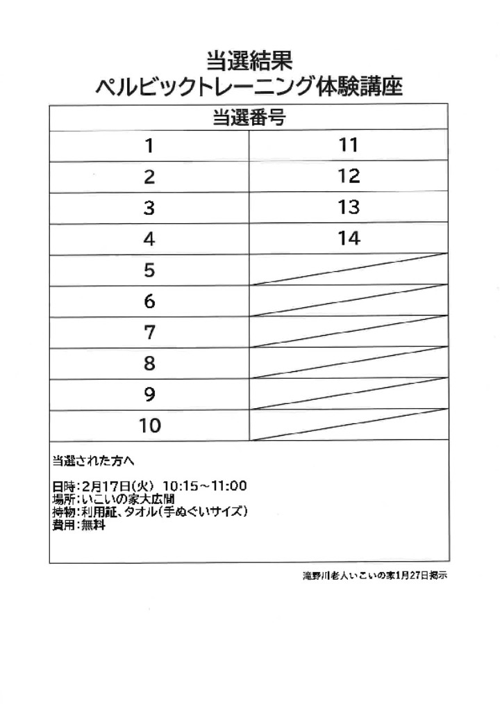 【当選発表】ペルビックトレーニング体験講座(2月17日)