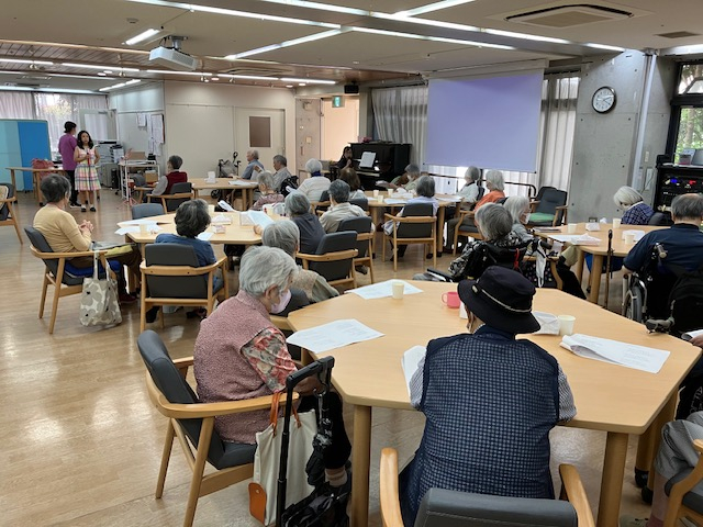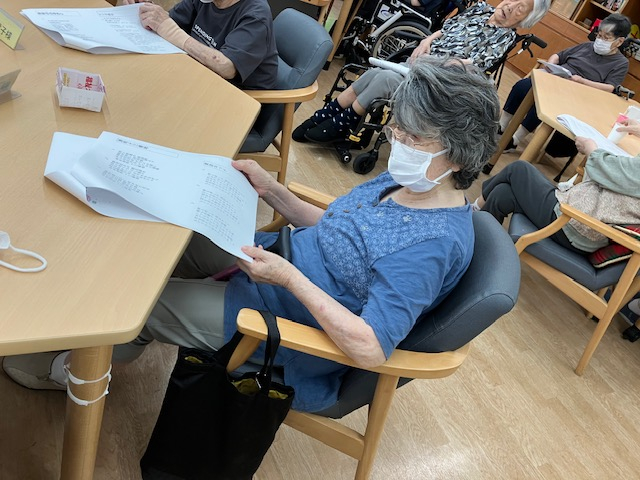 ピアノの演奏に合わせ歌ってくれます。利用者の皆様は
