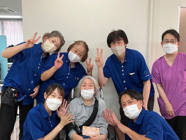利用者の皆様とHappyBirthdayの歌を歌いカードとプレゼント