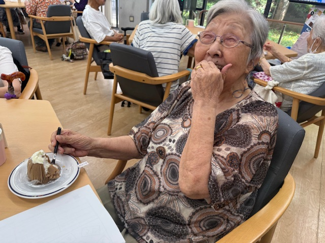 いざケーキを目の前にすると思わず笑みがこぼれるご利用者様たち!