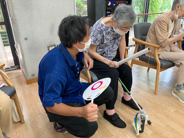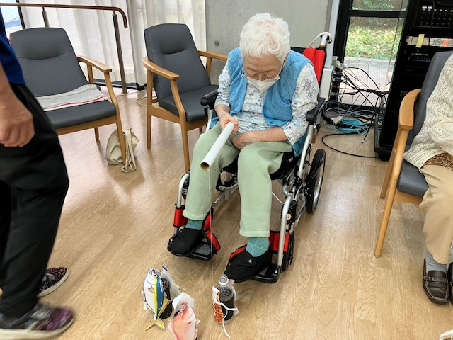 本日の午後レクは久々の運動レク「釣り大会」と「ボール回し」でした!