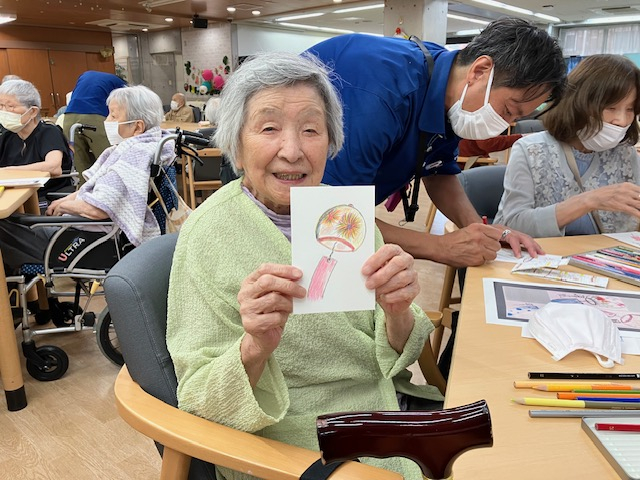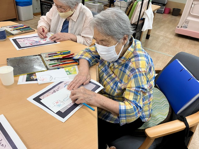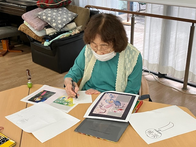 本日の午後レクは「絵手紙」を皆様で行いました。