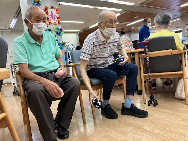 今日は午後のプログラムで「灼熱ボッチャ大会」を行いました。