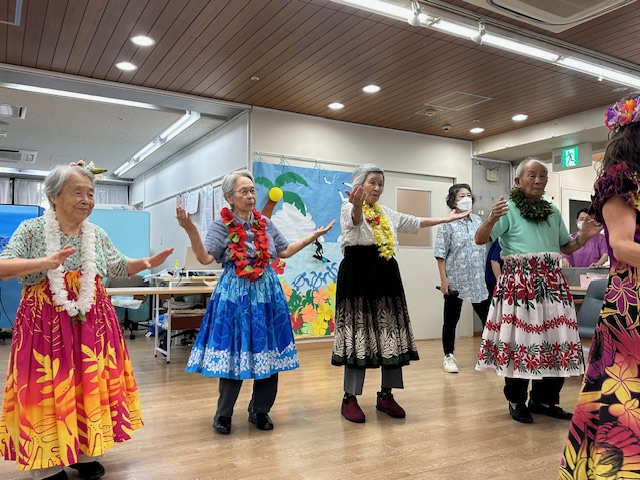 フラダンスの衣装に身を包み「癒しのハワイアンミュージック」