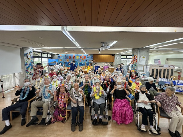 に合わせて踊りま~す。フロアー内が真夏のハワイ空間。