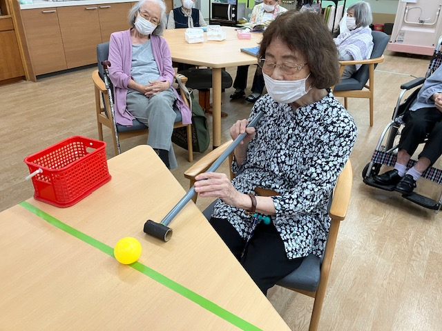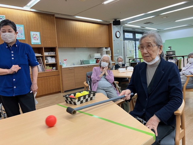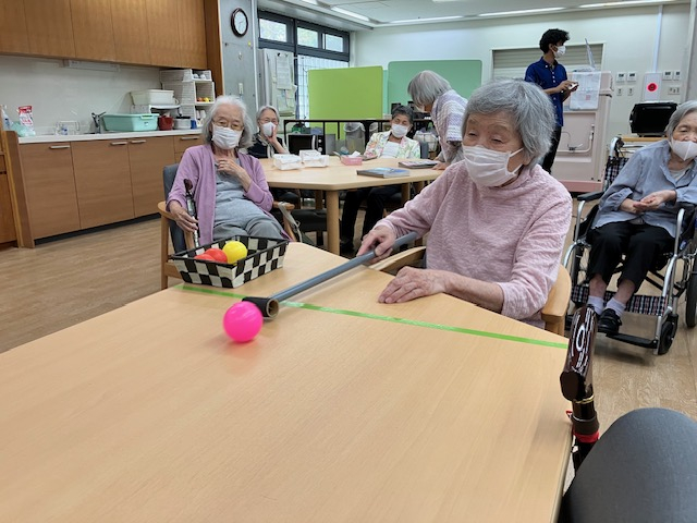 今日の午後レクは「テーブルビリヤード」を行いました!