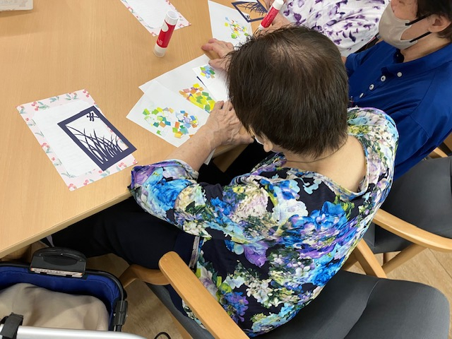 デザインをちぎり紙とコラボさせ素敵な模様を作りました!