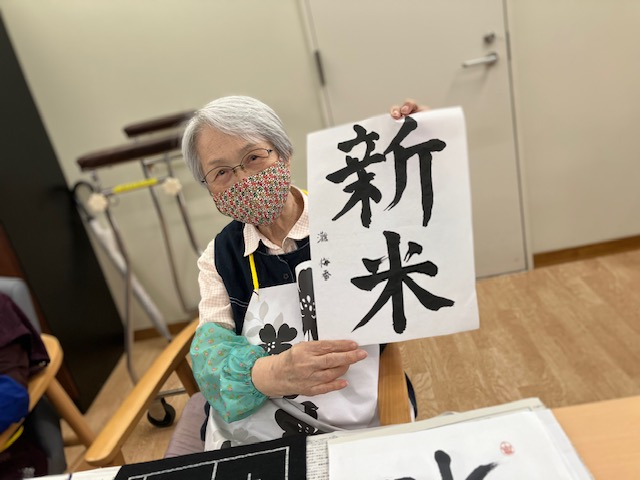 今月最初の土曜日午後レクは「松田先生書道」をご紹介します。