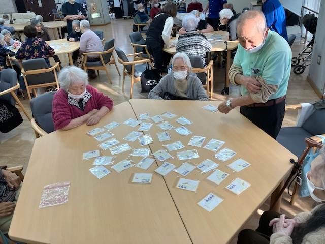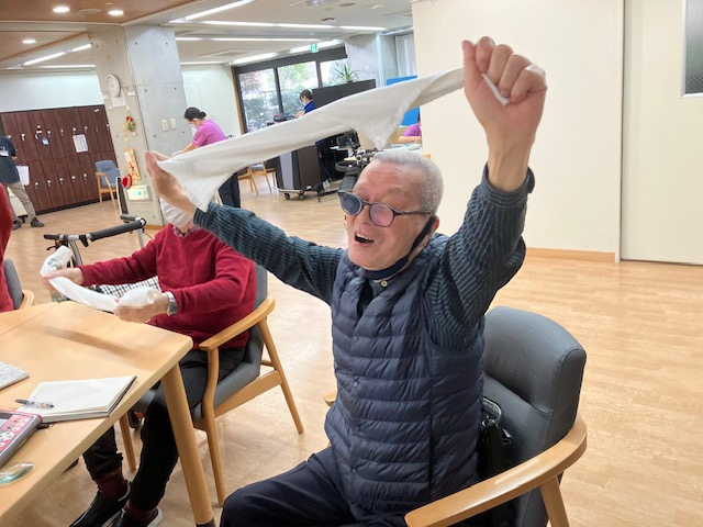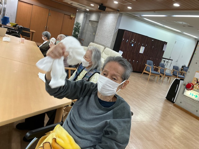 今日の午後レクは肌寒かったので「タオル体操とカードゲーム」をやりました!