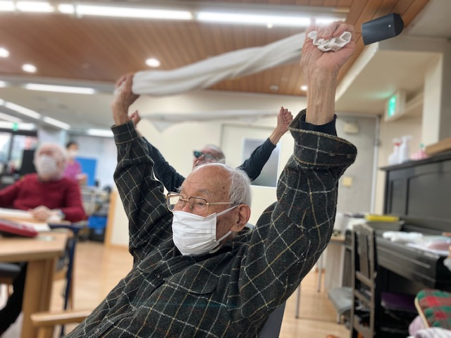 普段は動きの少ない男性陣もタオル体操の時は顔もイキイキされています!