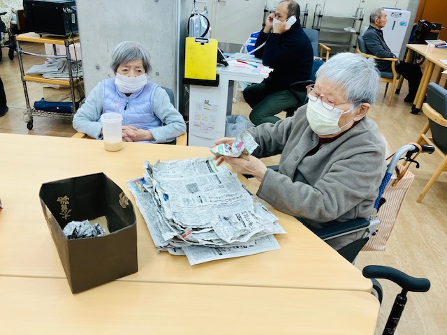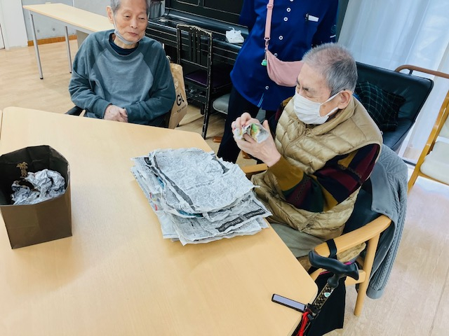 本日は、身近な「新聞紙」を使った大盛り上