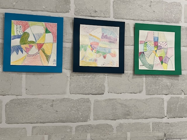 テーブルでお仲間と脳トレチームと臨床美術チームに分かれ楽しまれました。