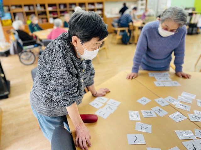テーブルごとひらがなが書かれたカードを配