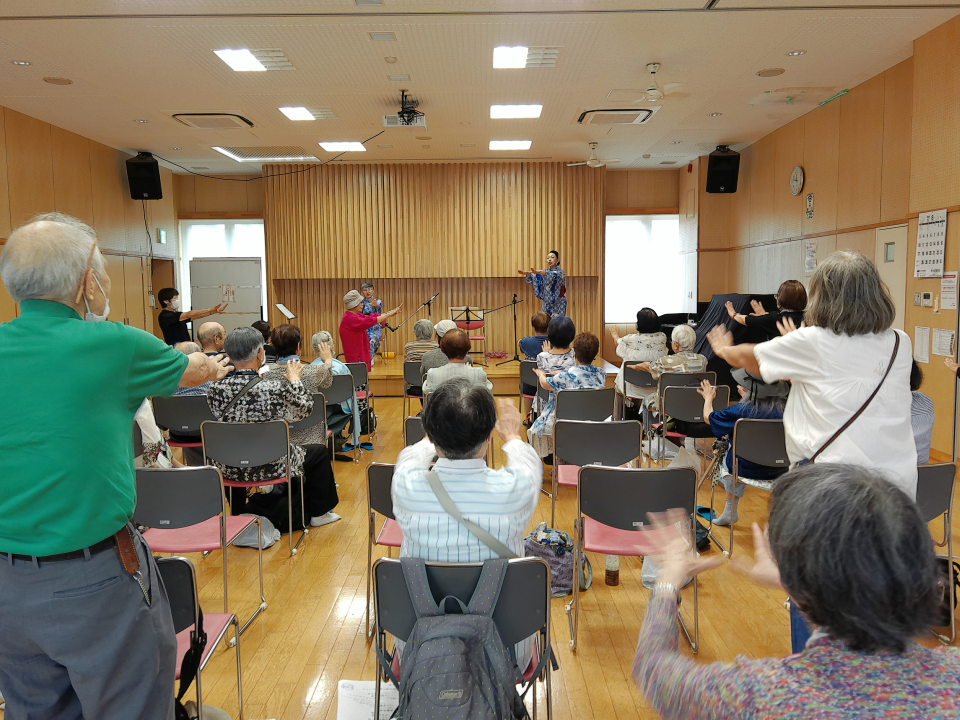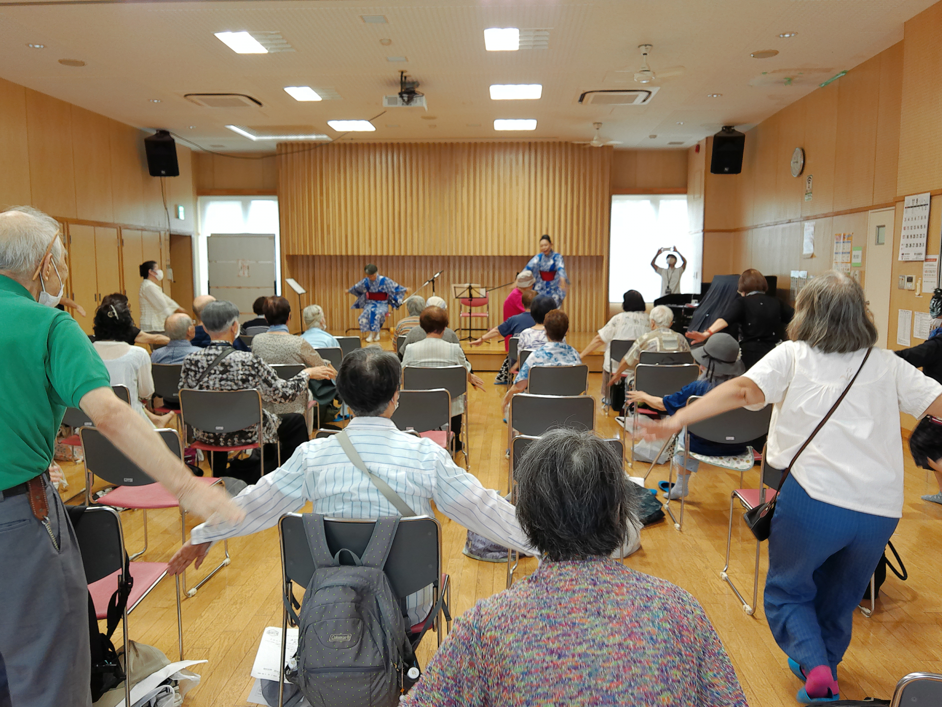 本日の演目は、「民謡で日本一周」・ソーラン節・秋田節・草津節・ちゃっきり節・伊勢音頭・よさこい節・九州炭坑節