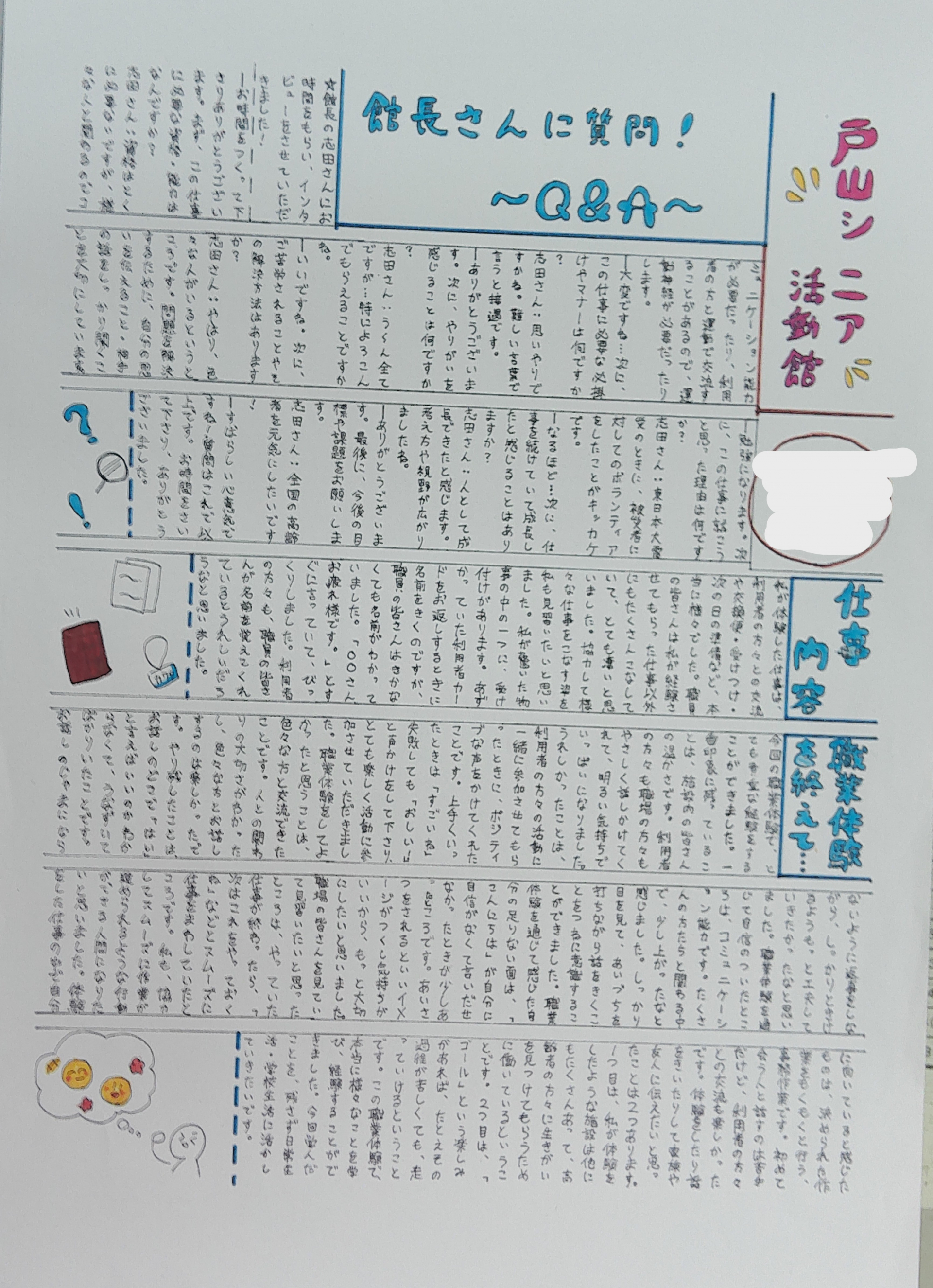 職場体験を行った西早稲田中学校の学生お二人から報告書が届きましたので、共有させていただきます。