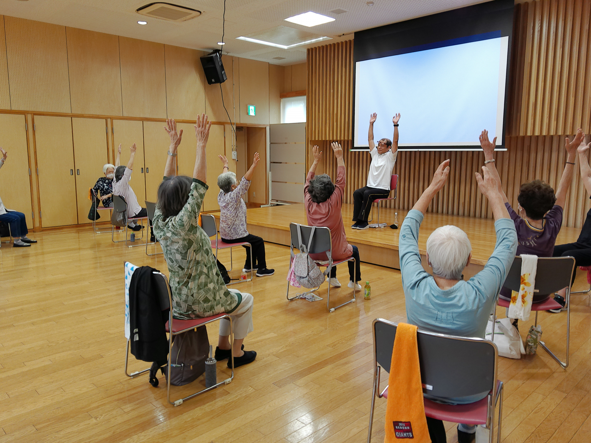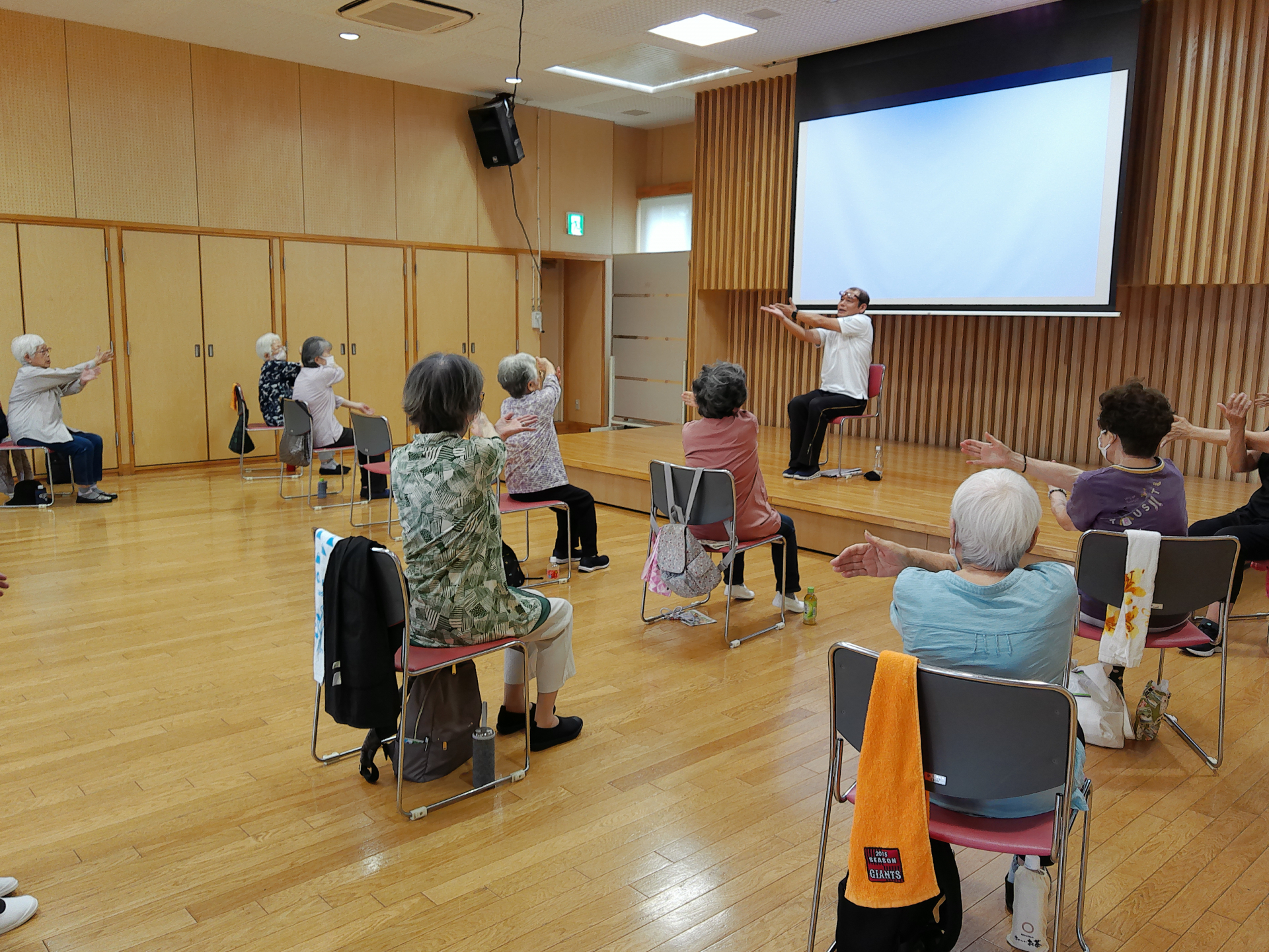 毎回楽しみにシニア活動館にいらして元気に体操しています。皆様体力維持に積極的でなれた動きで活動されておりました。2部の方は少し空きがあります。参加費無料。タオル 飲み物、上履きを用意してご参加下さい。お待ちしております。