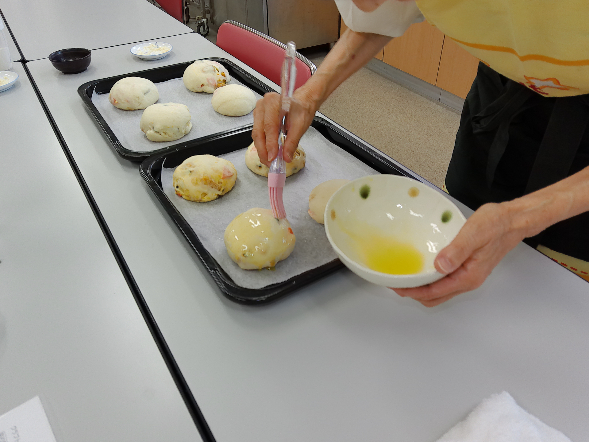 本日は秋野菜(カボチャ、ニンジン)使ったパンを作ります。先生がご用意したレシピを見ながら作っていきます。牛乳 砂糖、食塩を入れて混ぜた後、形を整えていきます。沢山野菜が入っていて美味しそう!