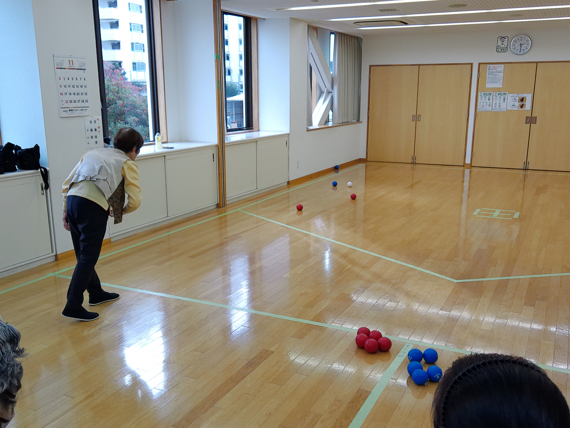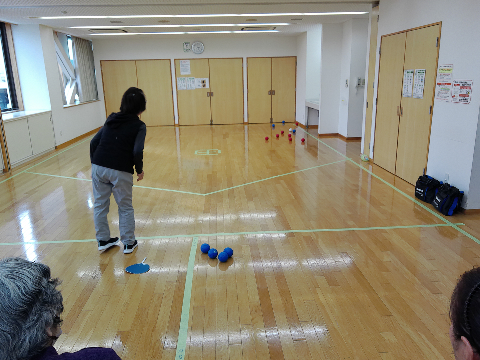 14時より活動室3にてボッチャを行いました。皆さん隔週に行われるボッチャを楽しみに参加さてりました。ラインギリギリを狙って難しくするのも作戦の一つ。