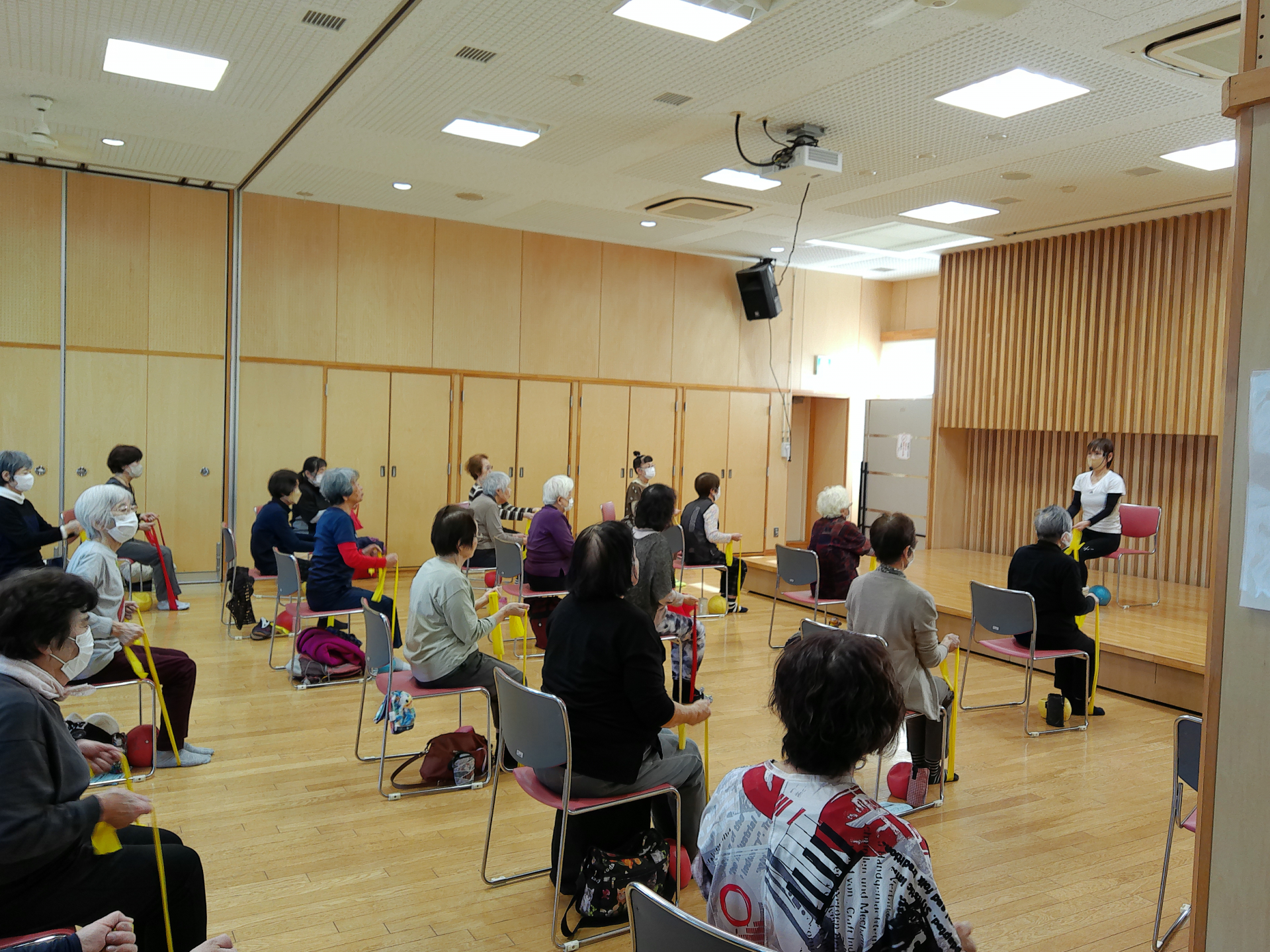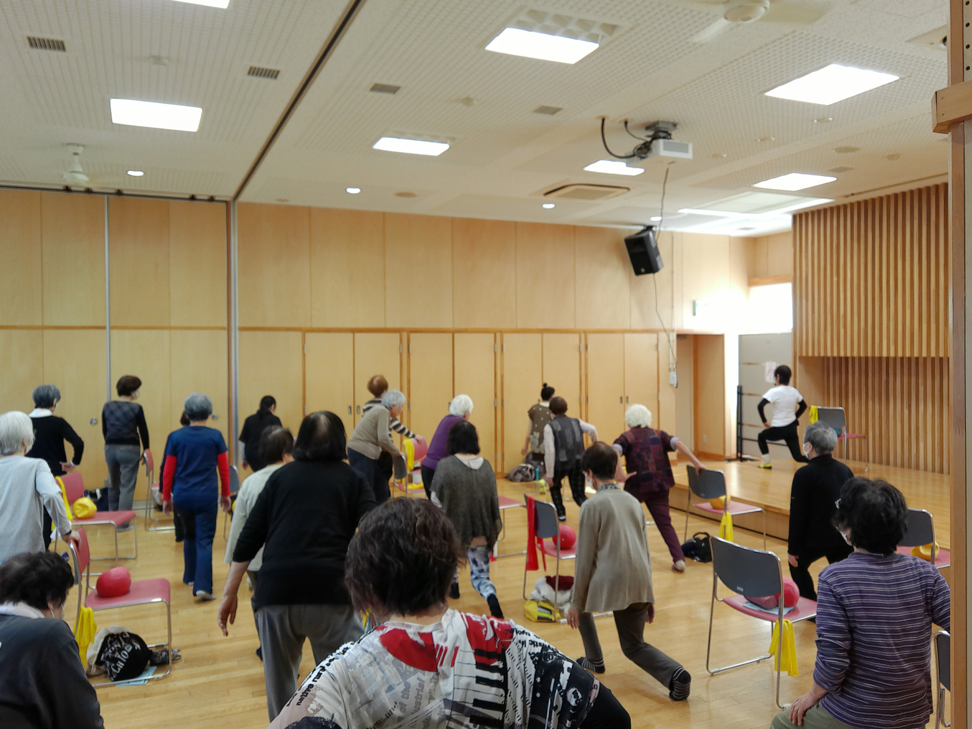 本日も超満員のシニアエクササイズ。毎週参加率も高く元気に体を動かしております。