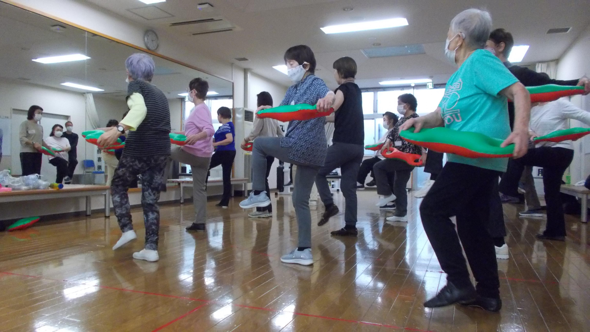 手具を使うことで体がよく動き、筋肉にもしっかり効いてきます。