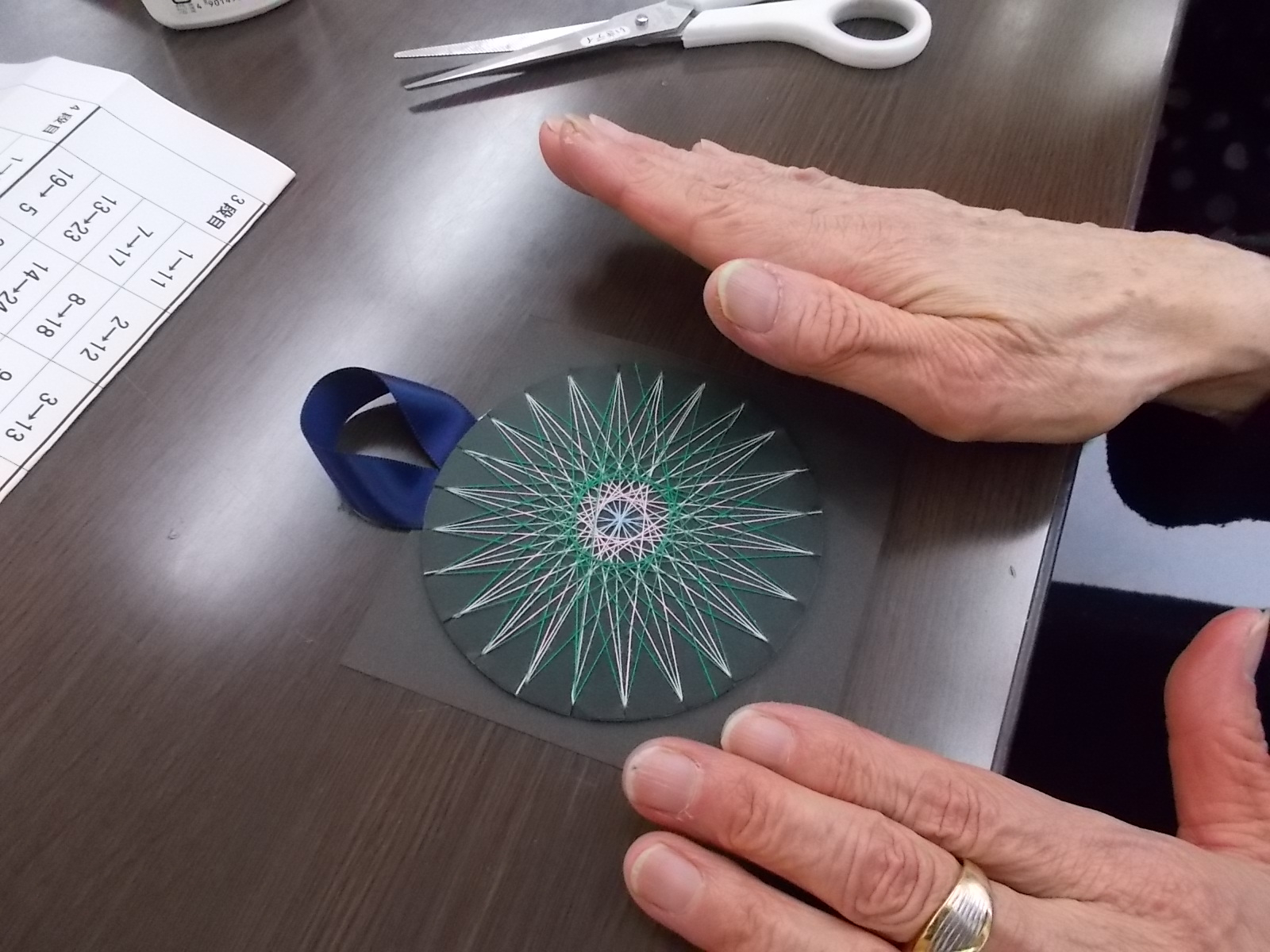 本日は『糸掛けアート』のオーナメントを作成しました。