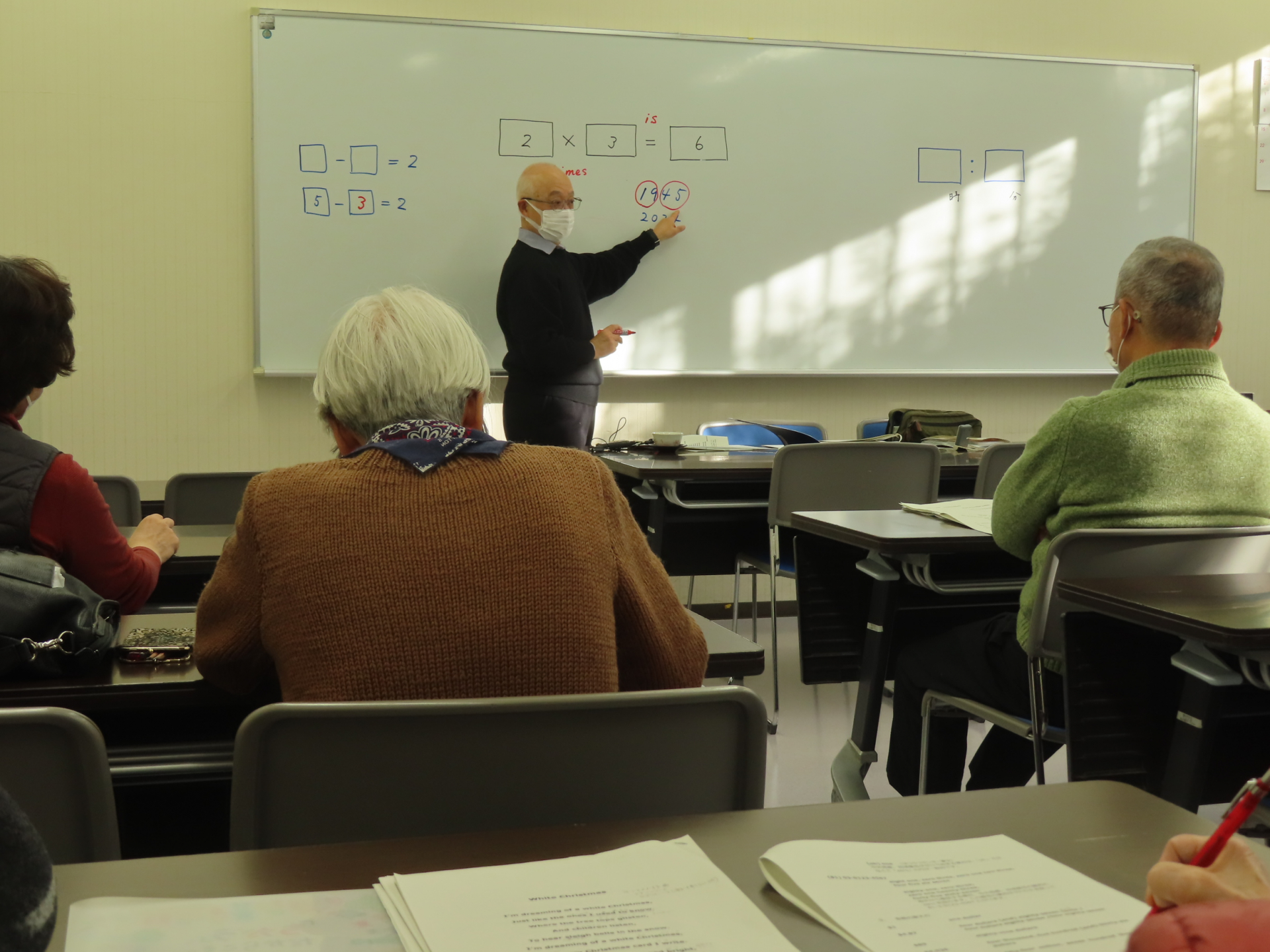 時刻や数字の言い方・強弱リズムなどの続きの他、新たに英語で掛け算も習いました。