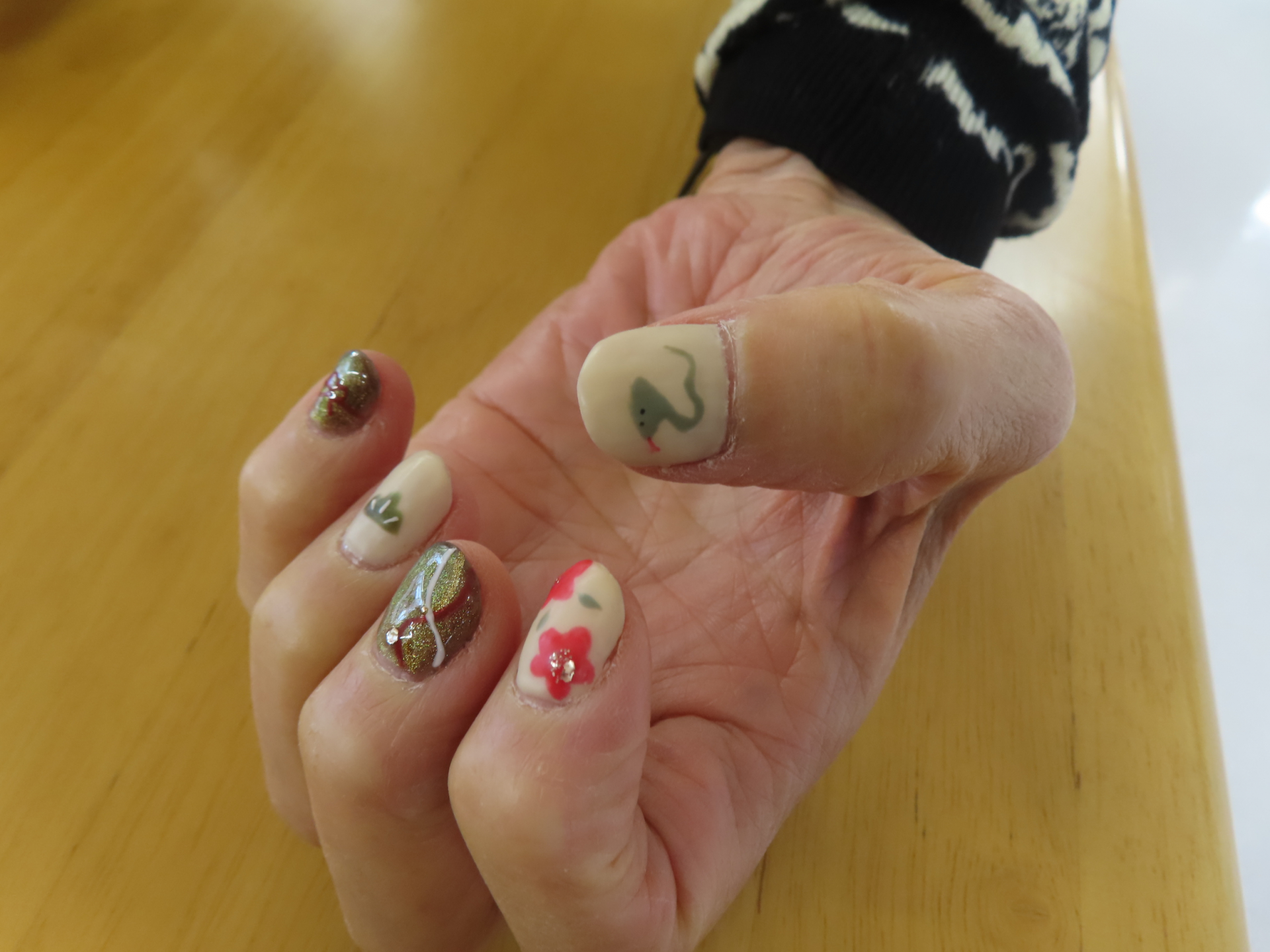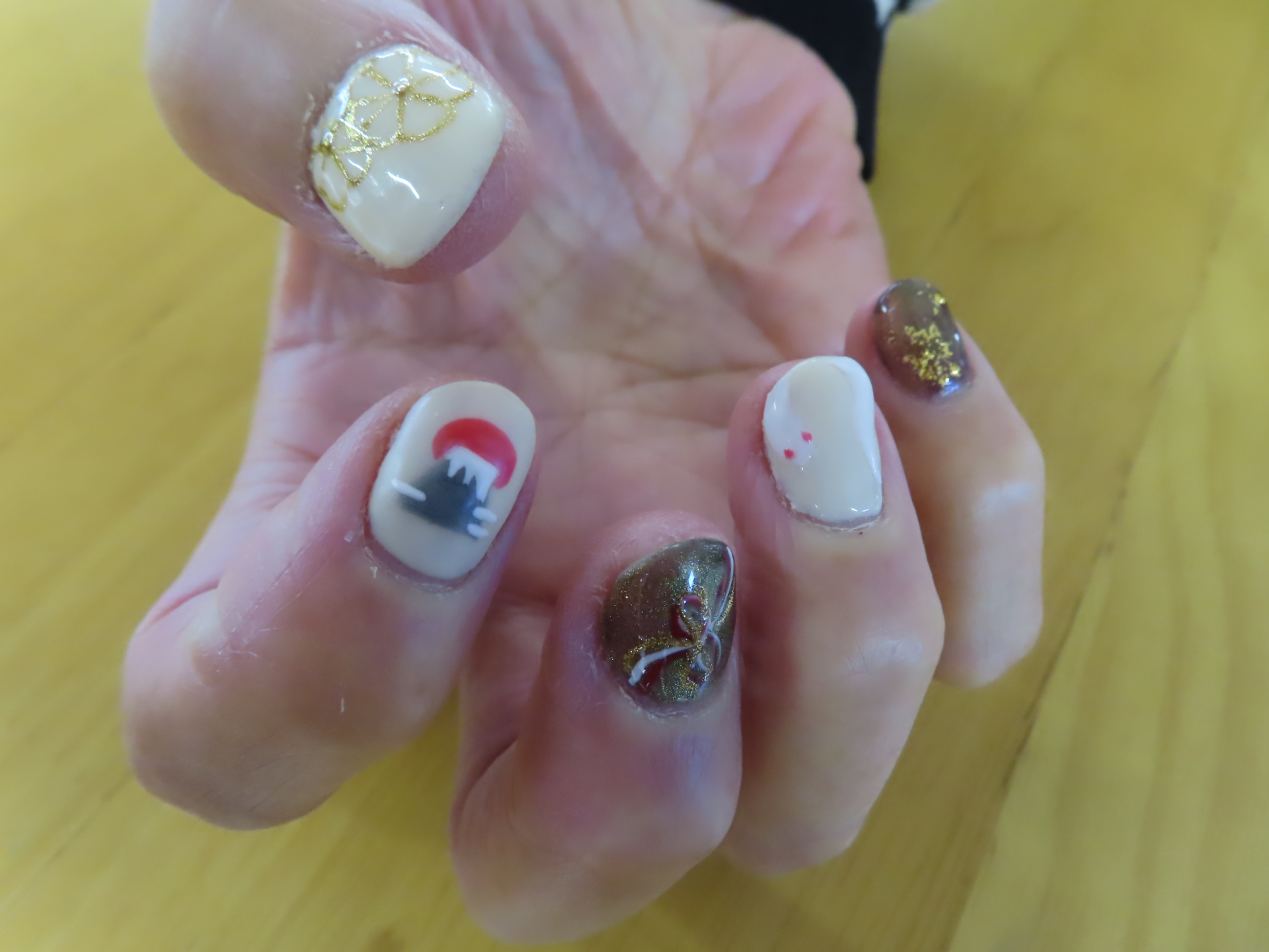 おしゃれなI様の爪が、お正月バージョンに美しくなっておりました。
