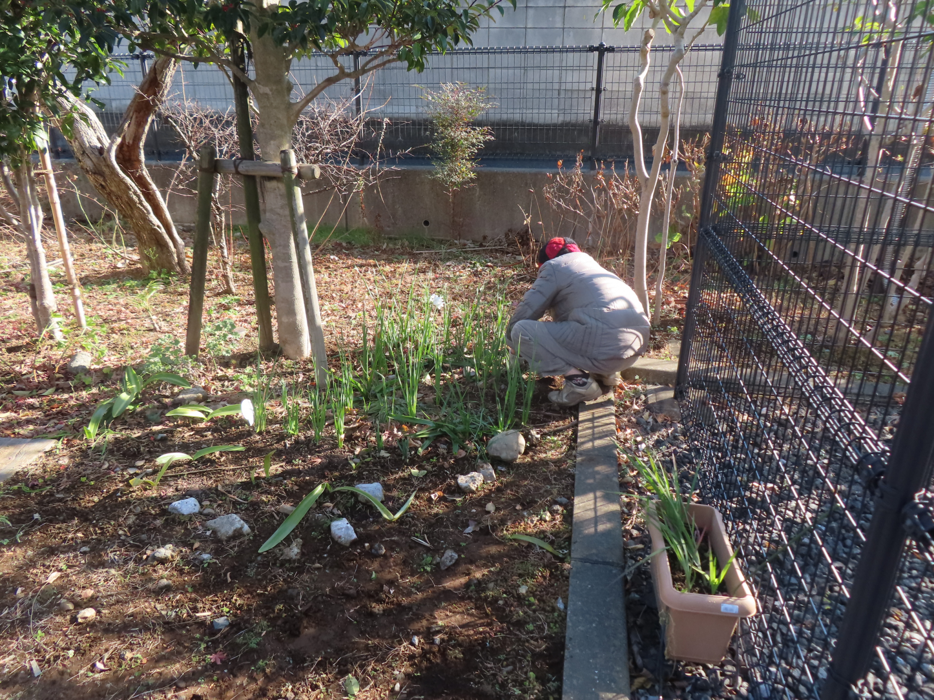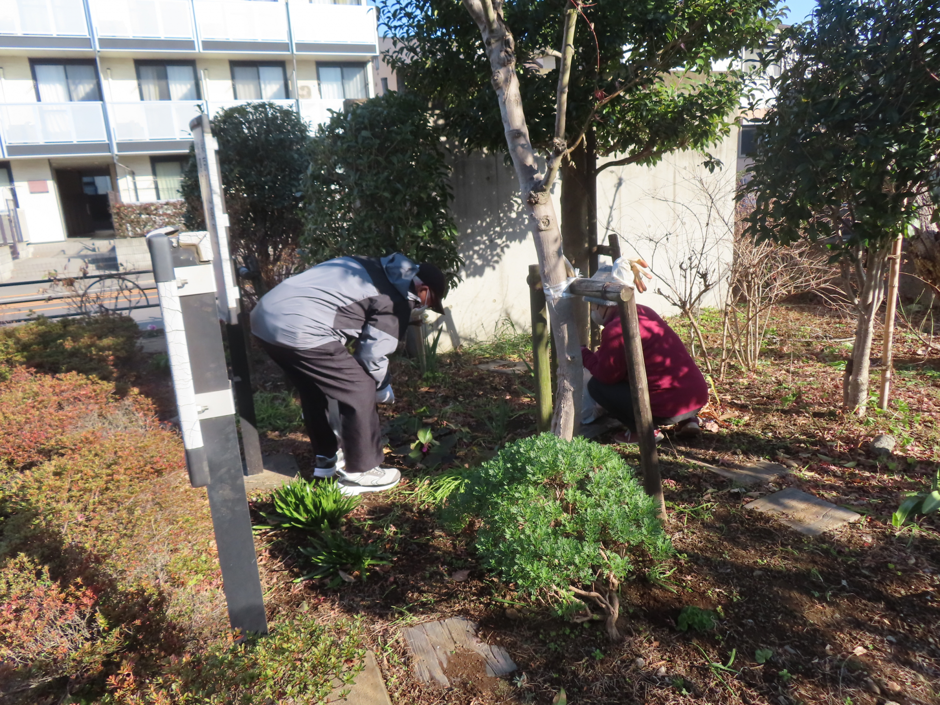 穏やかな日差しの中、花がら詰みや雑草取り等の作業をしました。