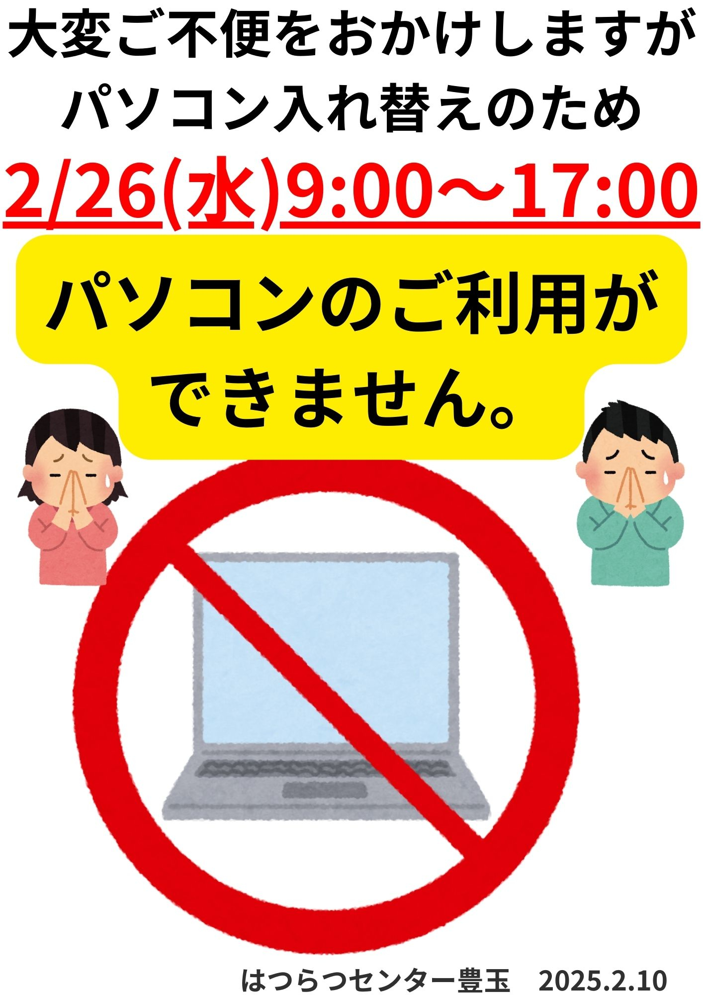 26日は17時以降でしたらパソコンの個人利用が可能となります。