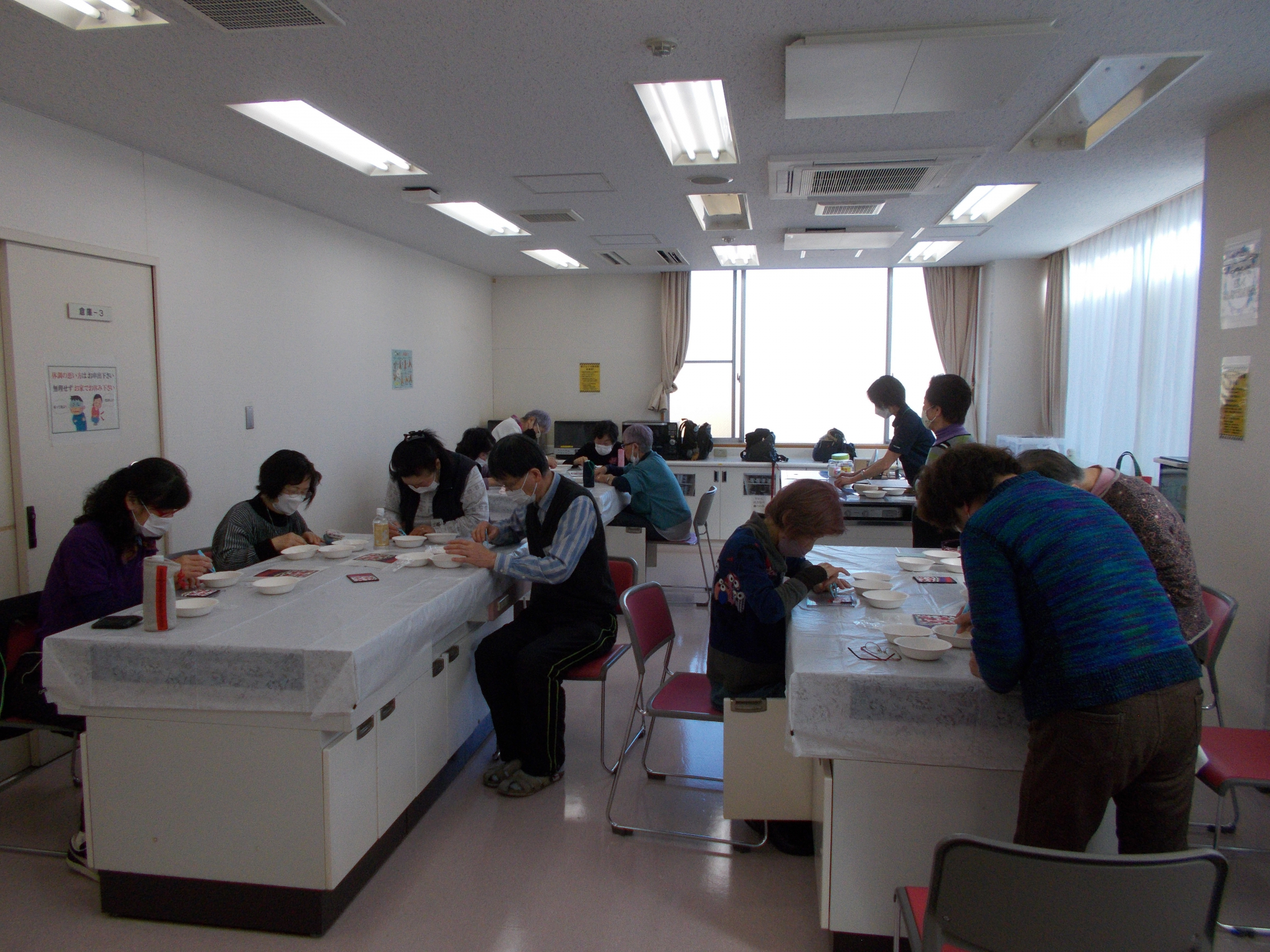図案を見ながら黙々と製作を進める皆さん。