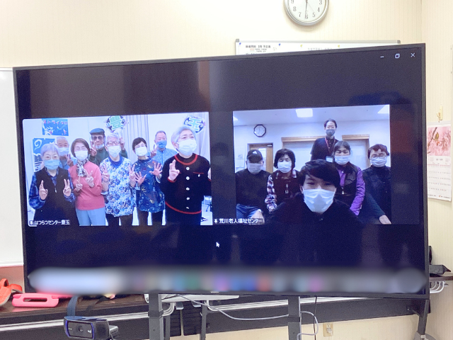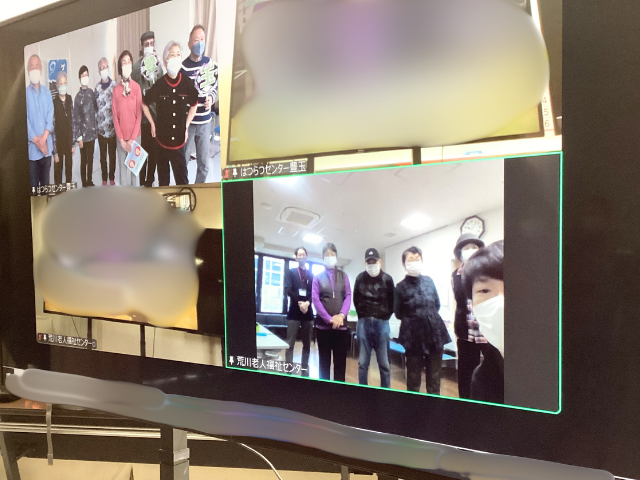 最後は画面越しに集合写真、改めて荒川老人福祉センターの選手&D総監督、