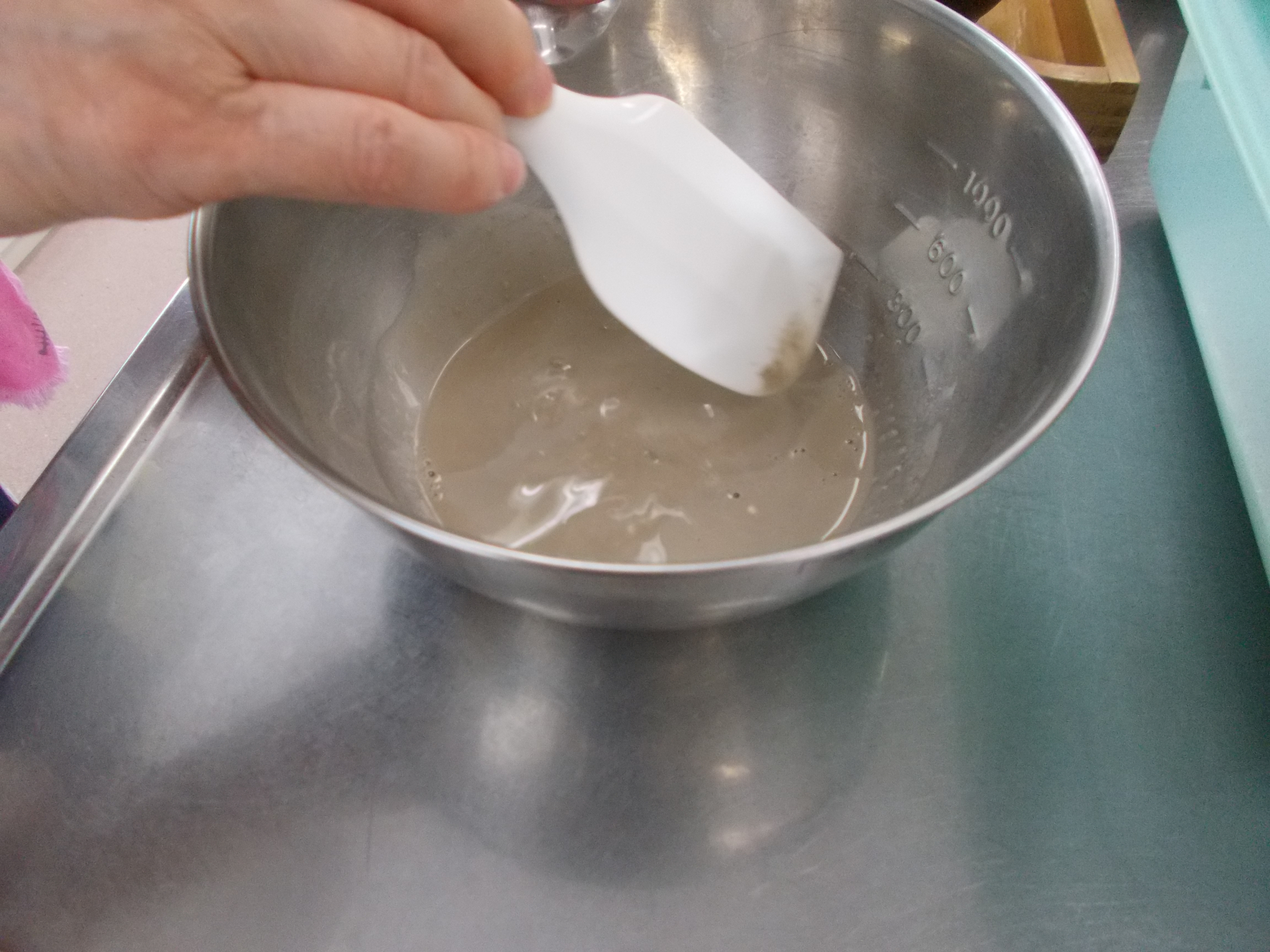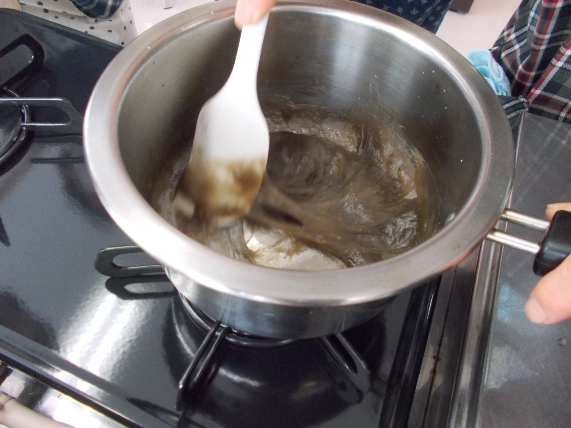 鍋を火にかけて練り上げます。透明感と粘りが出ました!