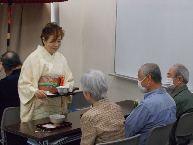 席主 佐山 象仙先生によるお手前をご覧いただきながら、お茶を楽しんでいただきました。