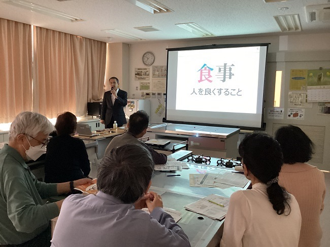キユーピー株式会社から講師をお招きし、シニア世代に必要な栄養素や食事を楽しむことの大切さを講義していただきました。