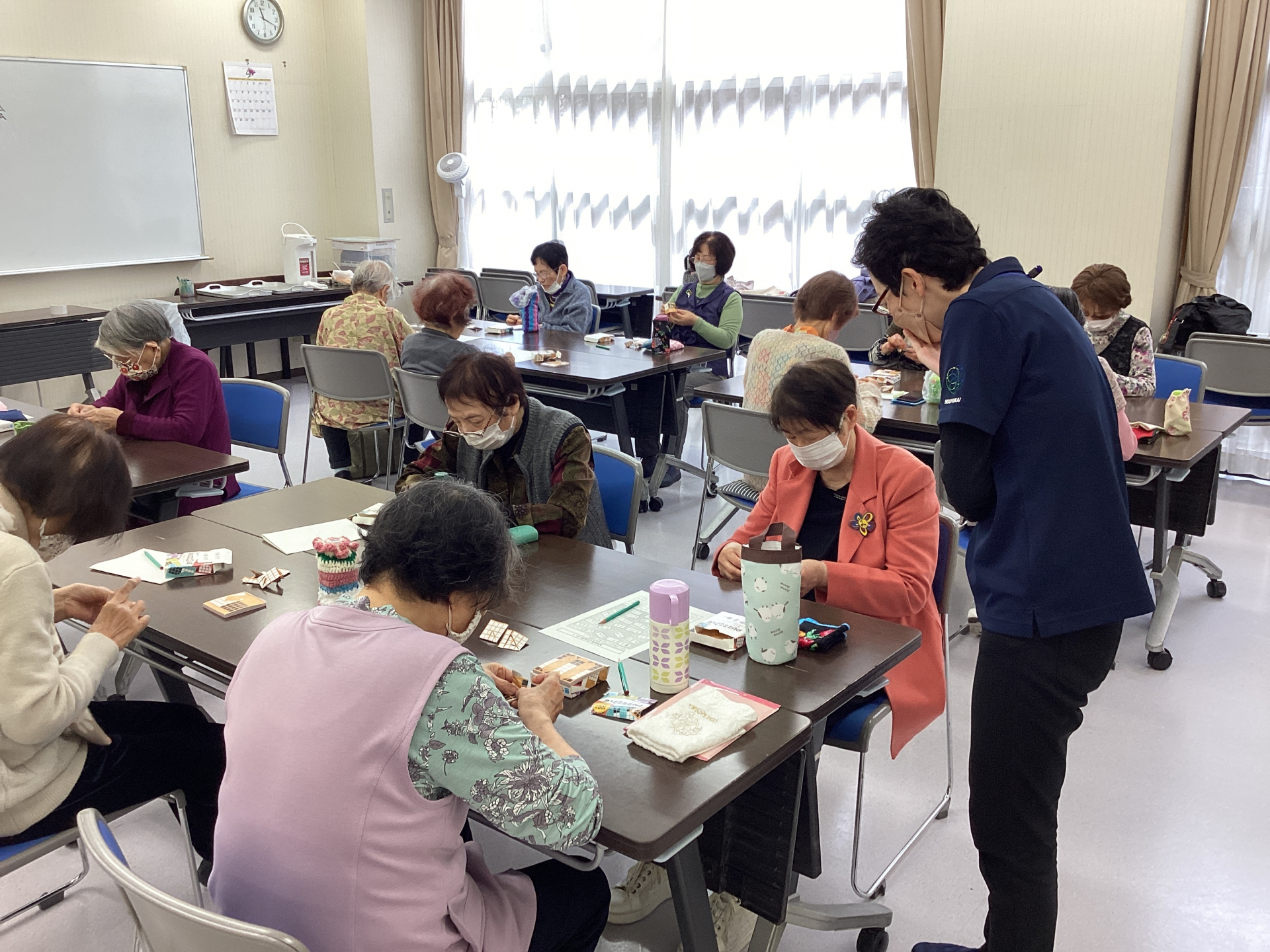 園児さんが帰られた後は、プリントを使った脳トレとパズル折り紙で楽しみました♪