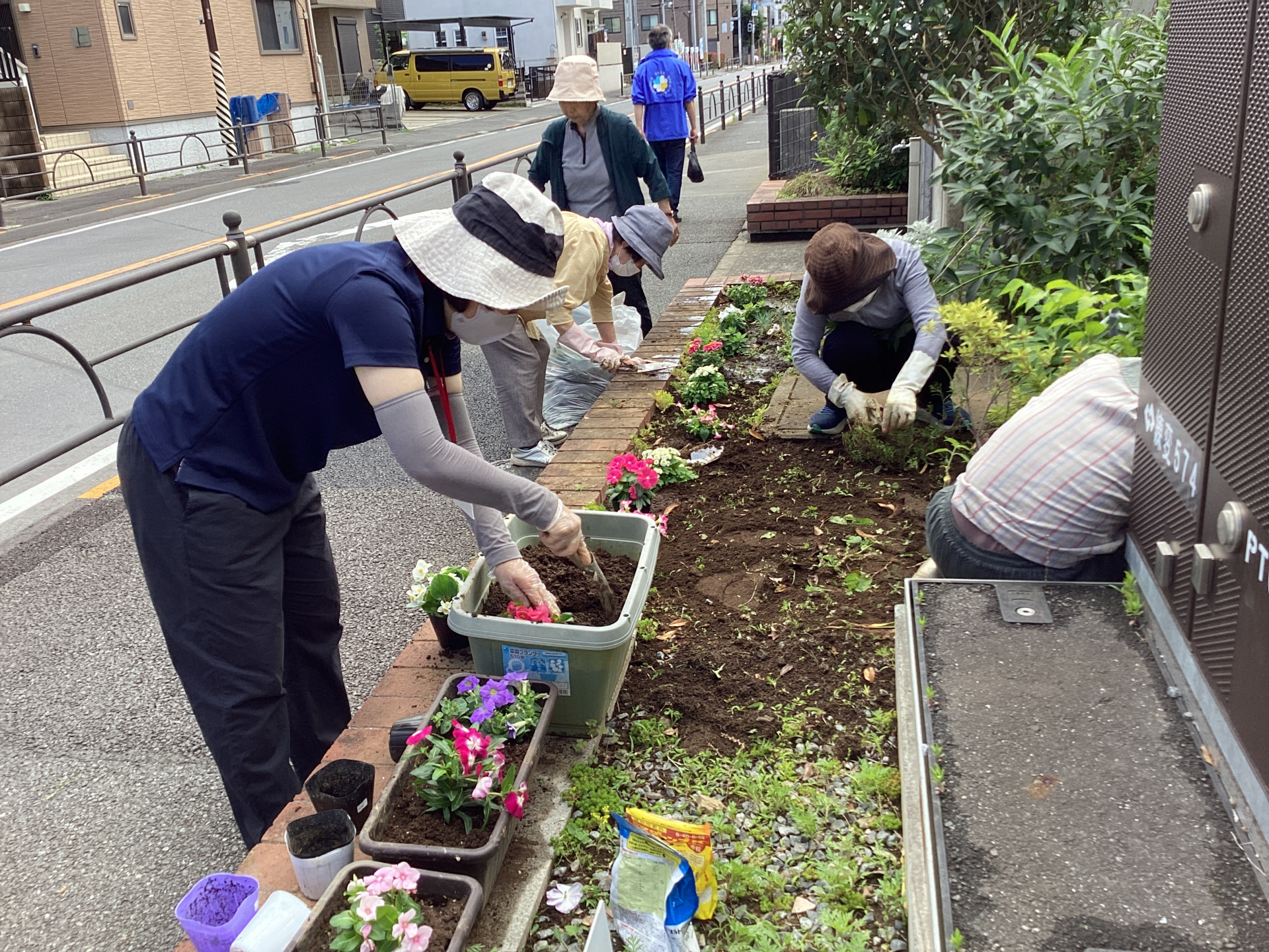 今日はボランティアの皆さんとお花屋さんに植え替えのお花を買いに行って植え替えをしました。