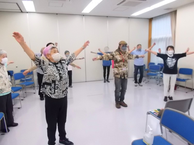 っと~~今日も元気にぃ~~仲良し体操レッツゴー!